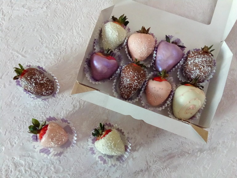 Белый шоколад и молочный) Использую бельгийский. Белый крашенный в розовый и сиреневый)
