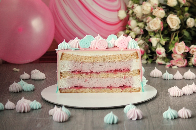 Сливочные коржи, ягодная прослойка, клубничный мусс.