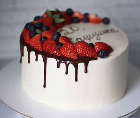 Украшение тортов кремом,шоколадом, фруктамипростенький, но очень аппетитный. давненько тортов с ягодами не было!надеюсь, с приближением лета их станет больше.