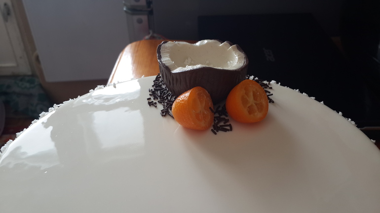 Спасибо. Торт был заморожен. Просто я рукожоп. Два раза чуть не навернулся со шпателя😁. Пришлось придерживать рукой. Естественно краешек смазала, когда руку убрала. И пришлось стружкой кокосовой края закрывать. А глазурь вроде одинаково и на боках легла. Излишки не убирала, как то сами растеклись