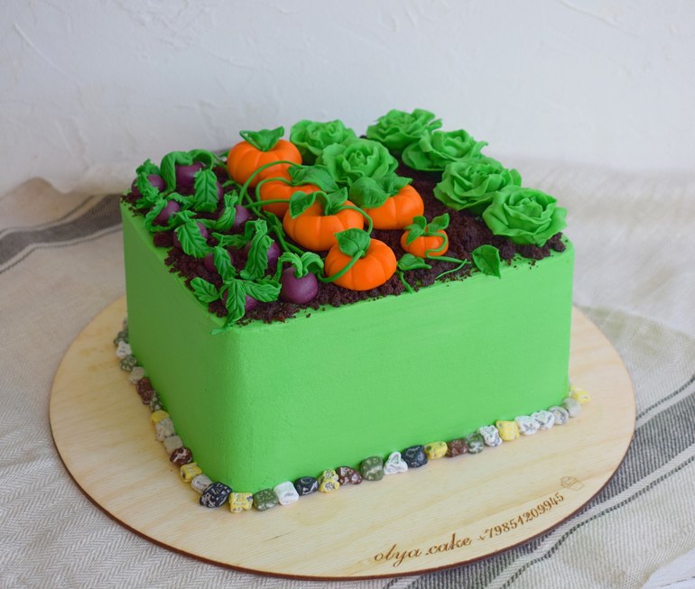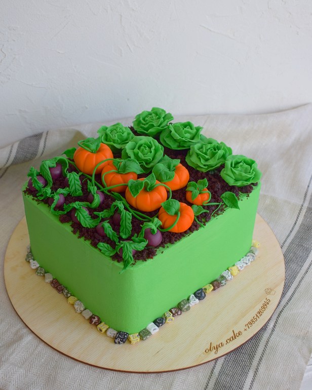 Украшение тортов кремом,шоколадом, фруктамиБелокочанная капуста, тыква🎃, свекла.🍃🥗💚. самые наисвежайшие овощи я вырастила на своей грядке, т.е. на тортике😅..