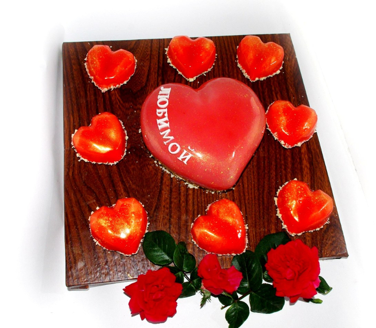 Муссовый набор - торт Любимая и пирожные сердце