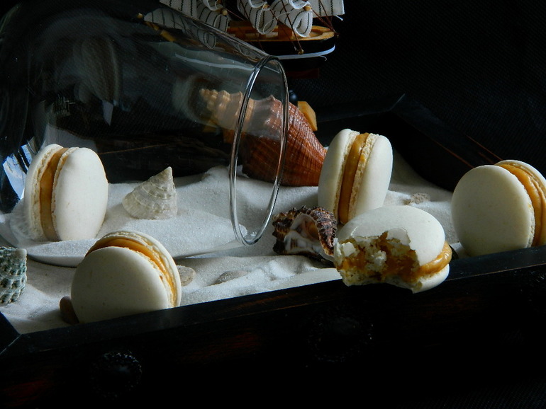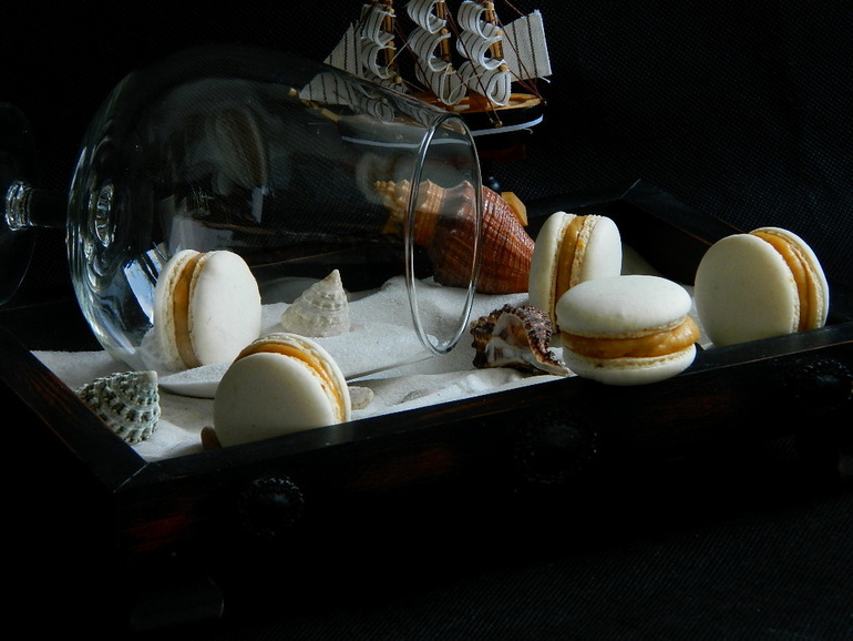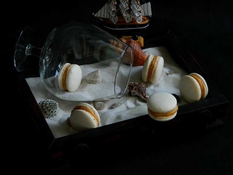 внутреннего мира макарон) Уж не знаю, где была моя голова, когда, вместо напрашивающегося оранжевого, я пихнула белый) Опомнилась, только когда вливала сироп в белки. Но как-то подумалось, что белый хорошо будет смотреться с карамельного цвета начинкой, и как-то плавно мысль перетекла в направлении - как фотографировать. Ну весна, каникулы у разума! И, пока нас с ним не было, радостно ожило вконец затырканое подсознание)) Нарисовался песочек, кораблик, ракушки, чайки, море. Стоп, стоп, стоп! Какие ракушки? Какой песок? Фото должно передавать историю этих макарон, а не историю усталой мамы, желающей на море) Ну так вот. История мамы, желающей на море и в отпуск победила) А макарон вкуснючие! 🤗