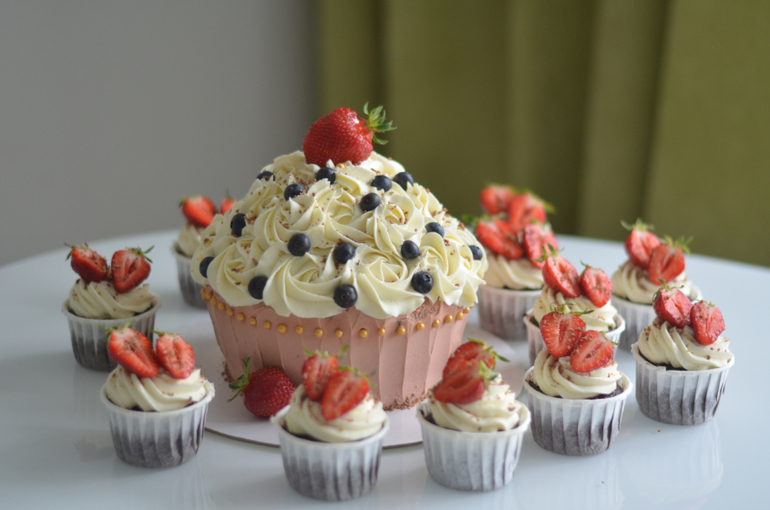 Украшение тортов кремом,шоколадом, фруктамиВот такой набор получился для выпускной группы в саду. Торт для воспитателей и капкейки деткам (на фото не все). Внутри всё шоколадно-сливочное с вишней