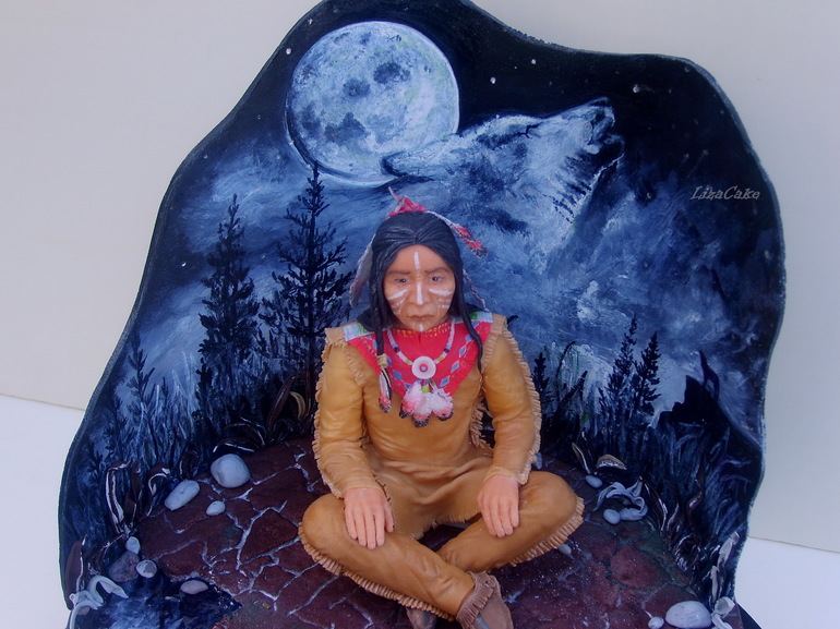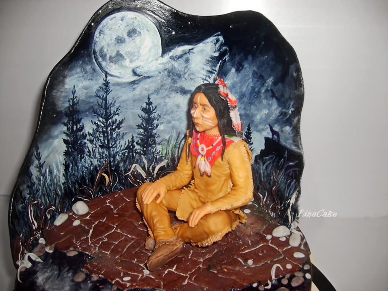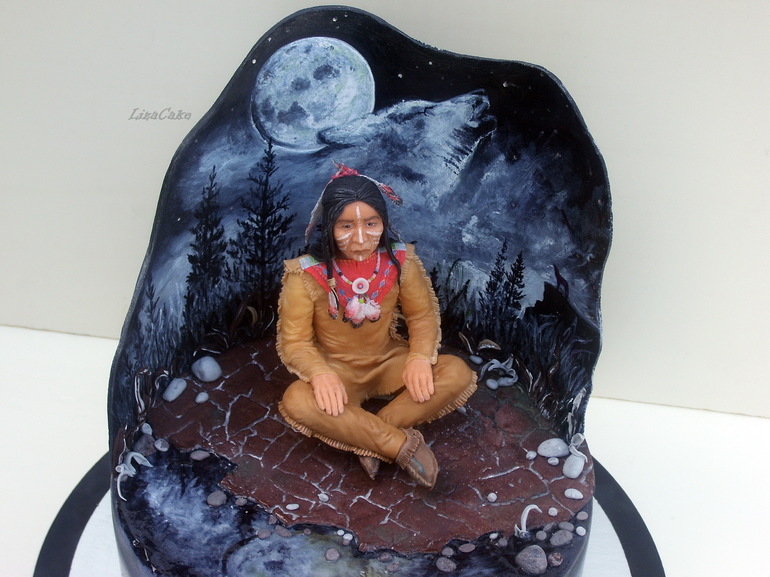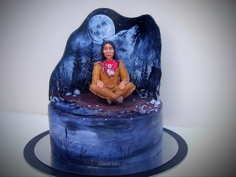 Торт не имел заданной тематики и делался скорее как визуализация мысли, нежли как раскрашенная еда, ибо как говаривал мудрый индеец - "Когда умирает легенда и пропадает мечта, в мире не остается величия", поэтому торт немножечко и мечта и легенда))..