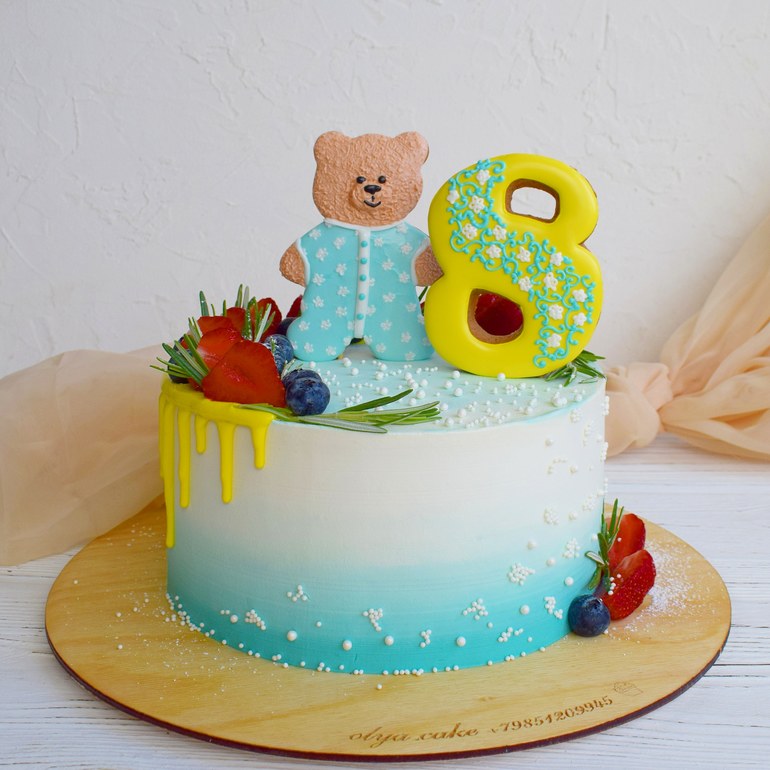 Украшение тортов кремом,шоколадом, фруктамиС пряничным🐻🐻🐻 мишкой, сделанным по подобию любимого игрушечного мишки именниницы.