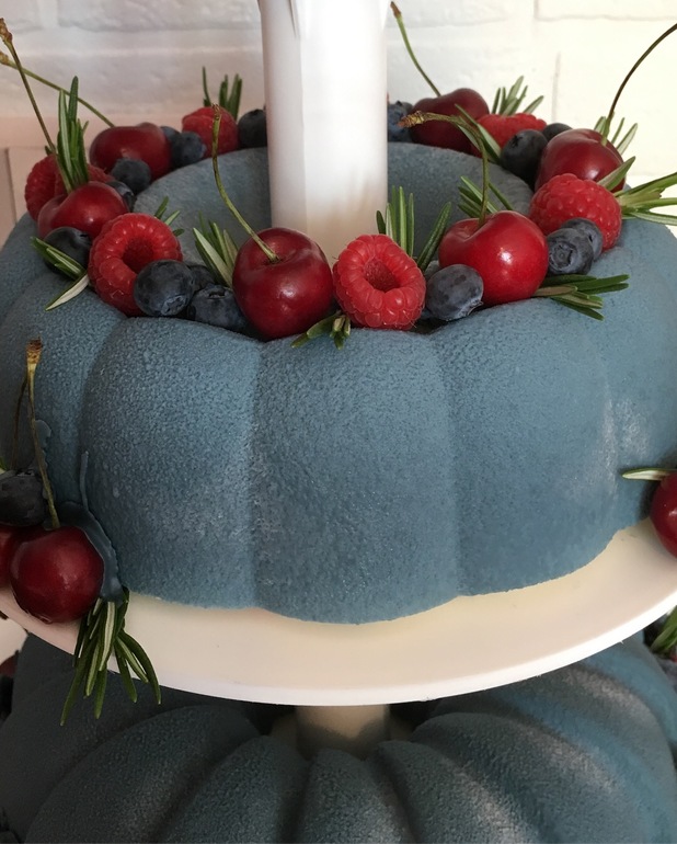 Средний - лаймовый мусс, желе из малины и лаймовый заварной крем