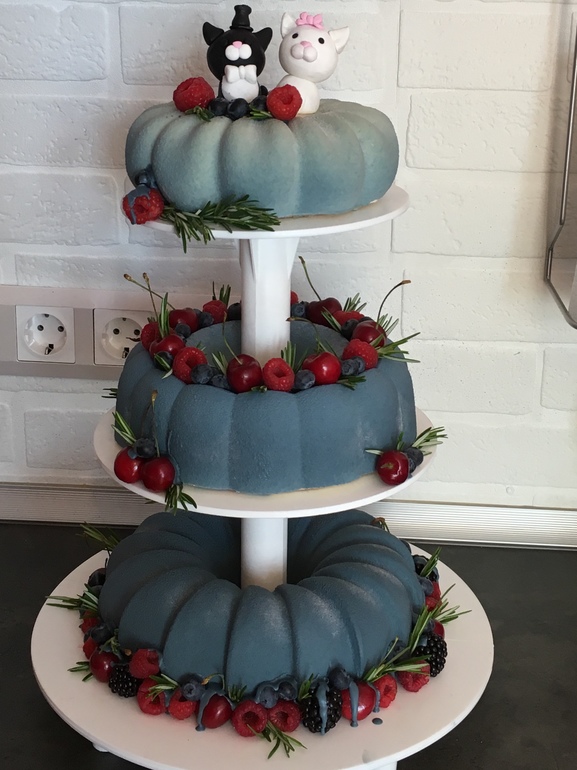 Верхний и нижний - мусс с бобом Тонка, манговое желе, крем из маракуйя