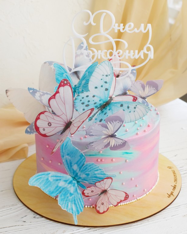 Вы можете распечатать любые понравившиеся Вам бабочки из интернета у девочек, кто печатает на пищевом принтере, поближе к Вам можно найти.