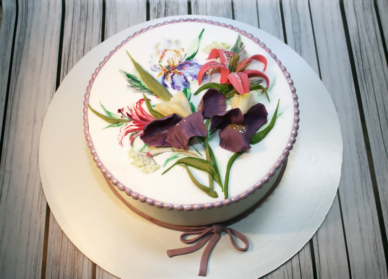 Торты юбилейныетехника ручной росписи с элементами объемной аппликации из пластичного шоколада