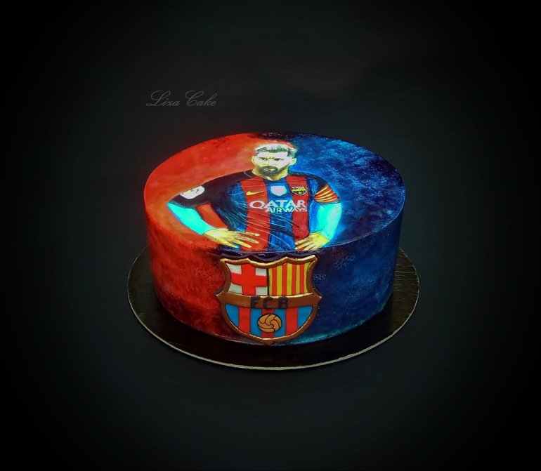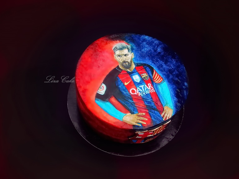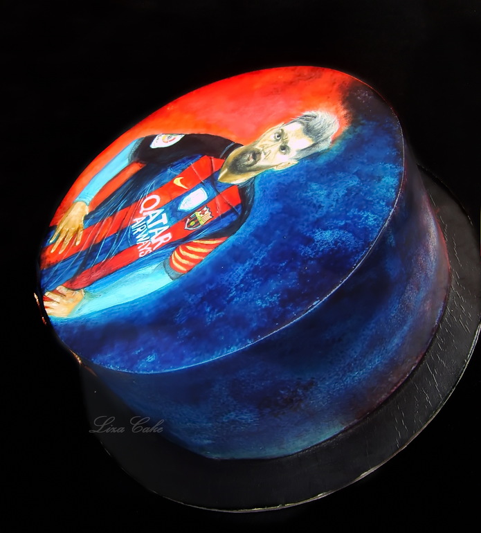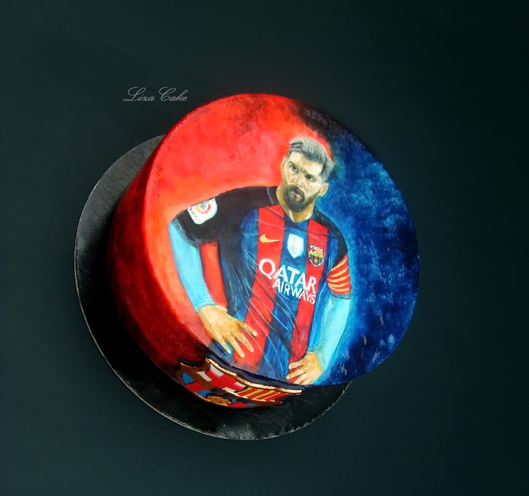 Честное слово - не ожидала, что смогу его нарисовать)).. Надеялась - да.. но полной уверенности не было). Торт был заказан на ДР ребенка, который очень увлечен футболом, сам занимается этим видом спорта и, как большинство мальчишек (да и девчонок тоже)) является фанатом Месси.