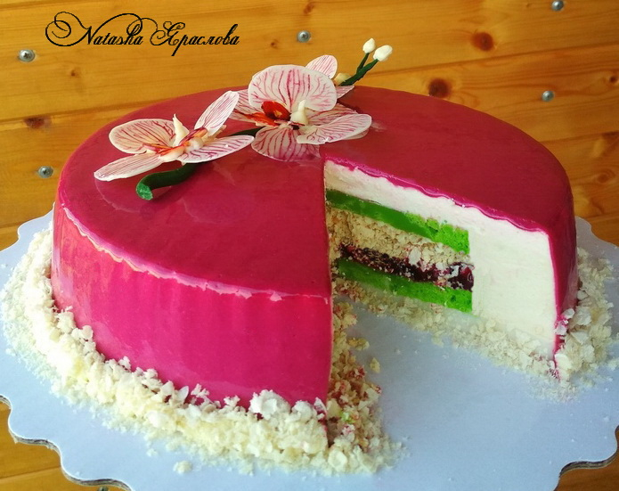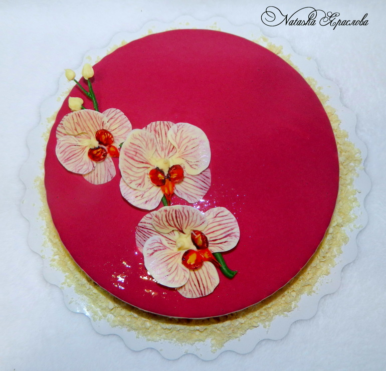 Муссовый торт "Мятная свежесть" с шоколадными орхидеями