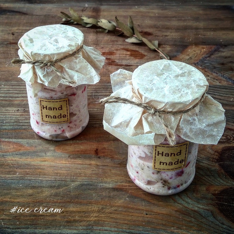 ))) это банан и вишня, по принципу: заморозила, взбила. разложила, если кушать замороженным, то реально вкусное мороженое, если чуть растает, то десерт воздушный
