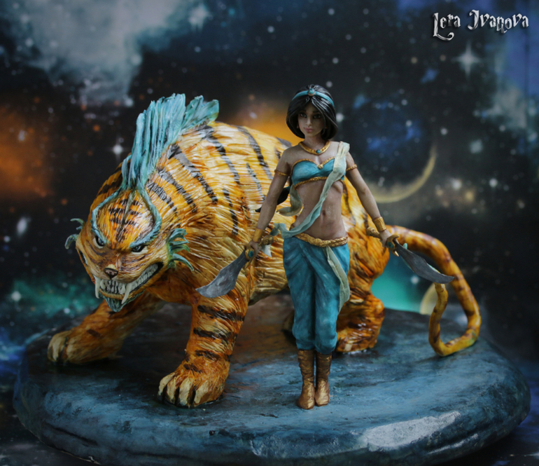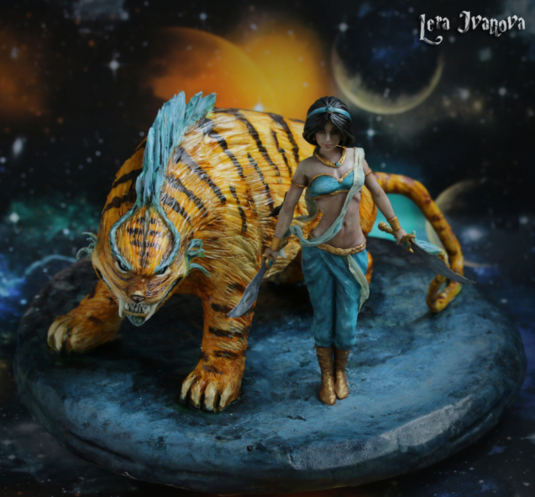 Огромное спасибо @globalsugarartistsnetwork за организацию и Nermeen Sayed за приглашение и такой замечательный проект! В этом международном коллабе участвовали лучшие мастера! Я счастлива быть в их числе! О моей работе: реалистичная принцесса Жасмин в образе воина другой галактики и её фантастический тигр Раджа) Задумка полностью моя, хотя подобных интерпретаций диснеевских принцесс оч много. Внутри тигра шоколадный торт, покрыт пластичным шоколадом. Торт небольшой, длина без хвоста 27 см. Подставку для тигра делал мой муж) Высота Жасмин 21 см, а это очень маленькая фигурка, если учесть тающий материал сахарная мастика. Волосы из пластичного шоколада собственного приготовления (не из глазури). Под катом больше фото...)