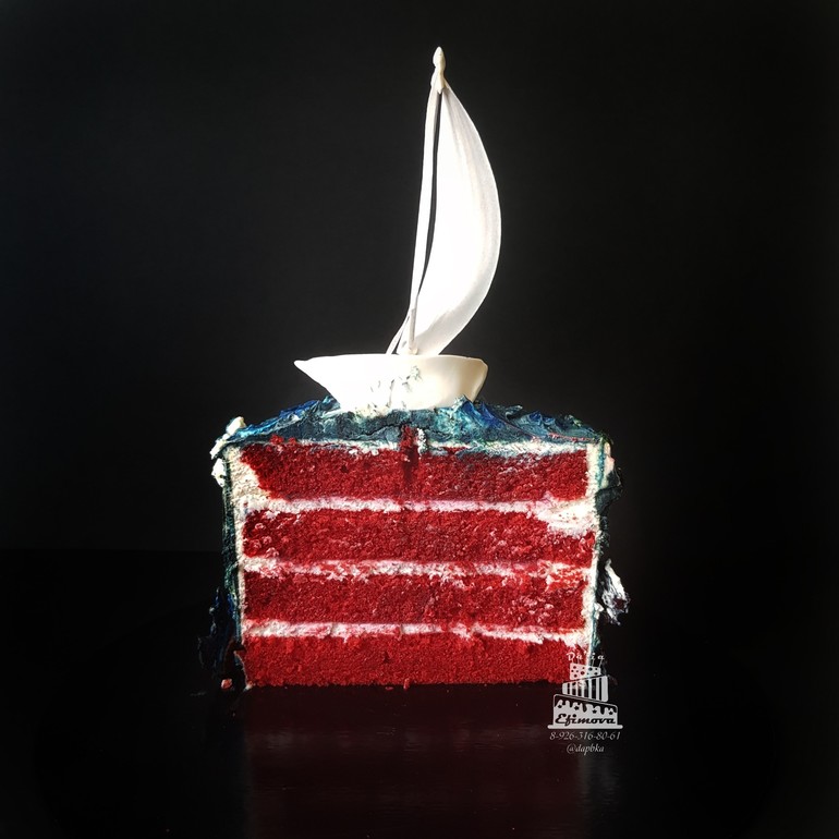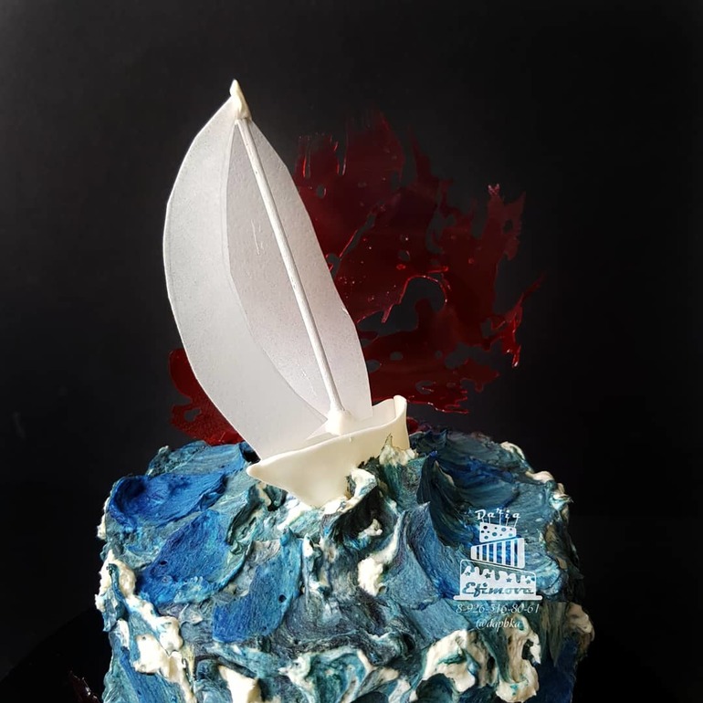 Не)) сам парус из вафли) а кораблик из шоколада пластичного)