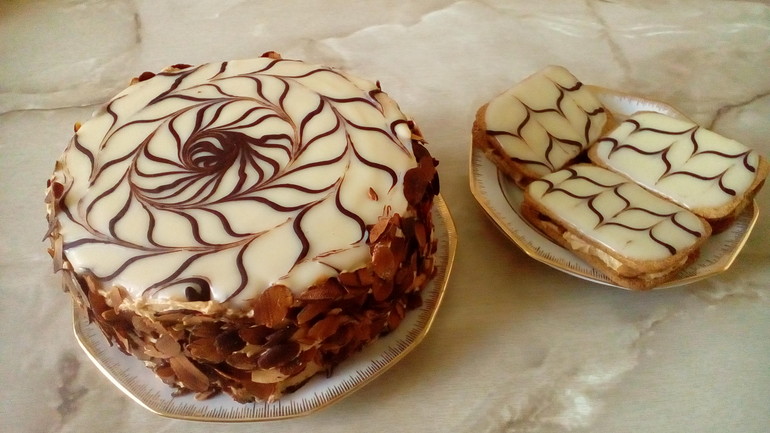 Это мой первый опыт. Училась тут у опытного кондитера. Наверное сама бы не смогла такое приготовить. А на мастер-классе все так хорошо объяснили, рецепт дали. Буду теперь сама пробовать дома