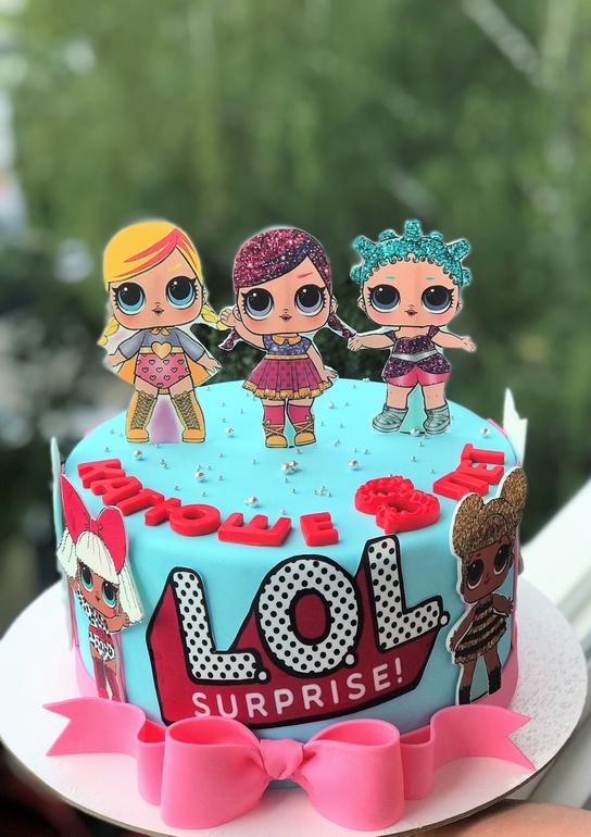 Добрый день! Очень милый и нежный тортик! Подскажите пожалуйста, у Вас еще были есть фото Ваших тортиков с тематикой кукол лол, если есть пришлите пожалуйста фото в личку? Вы бираю тортик дочке на ДР в декабре (очень увлекается лол).