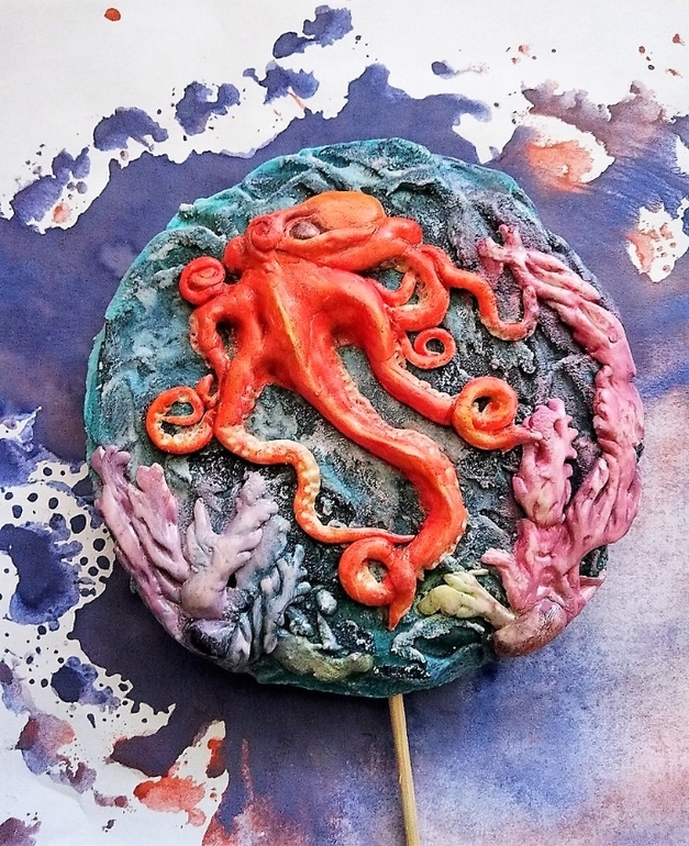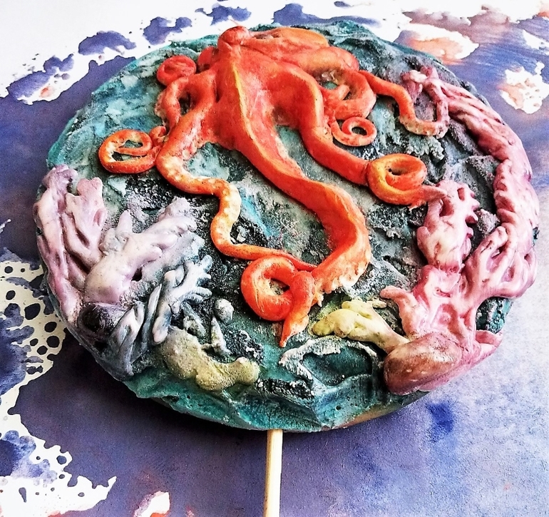 Айсинг только море-заливка. Кораллы и осьминог - шоколад)