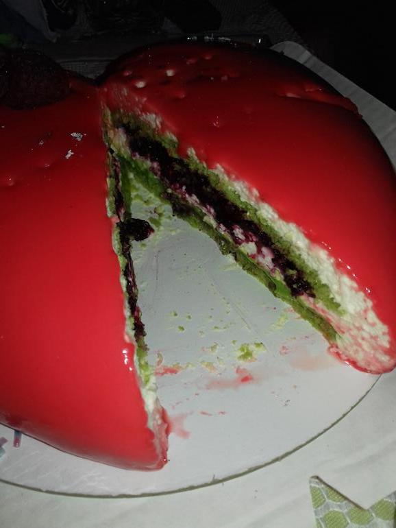 Начинка фисташковый корж (очень понравился) и черная смородина.