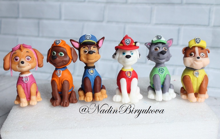 Симпатяжки такие! Как вижу торты на тему ЩП больше, чем с одной собачкой - сразу уважением проникаюсь)))) Стольких слепить- большой труд!