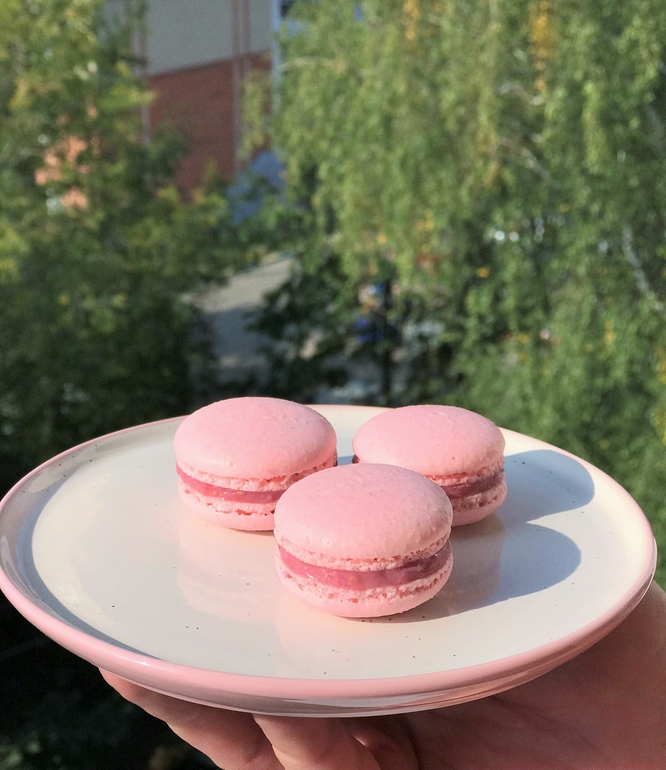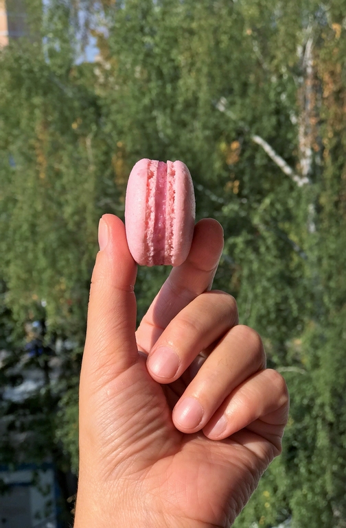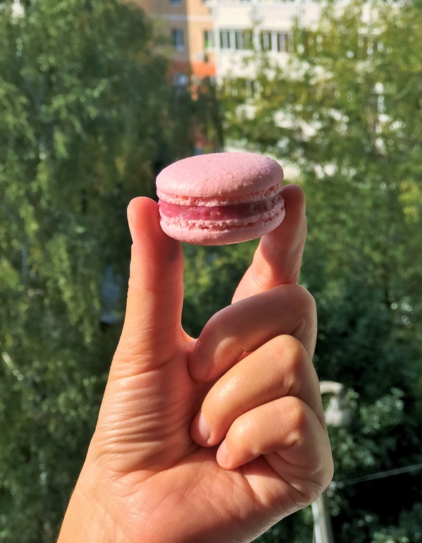 Тоже набиваю руку...раньше нравилось с сырным кремом...сейчас делаю на основе шоколада с ягодами...и так оказалось вкуснее...не сыреют внутри))) у макаронс важно "мясо" ( тесто внутри на изломе) бьюсь за "мясо")))...если не обидетесь ,то гарнир у Вас кажется крупинчатым , не гладким....и он должен слегка выходить за края....
