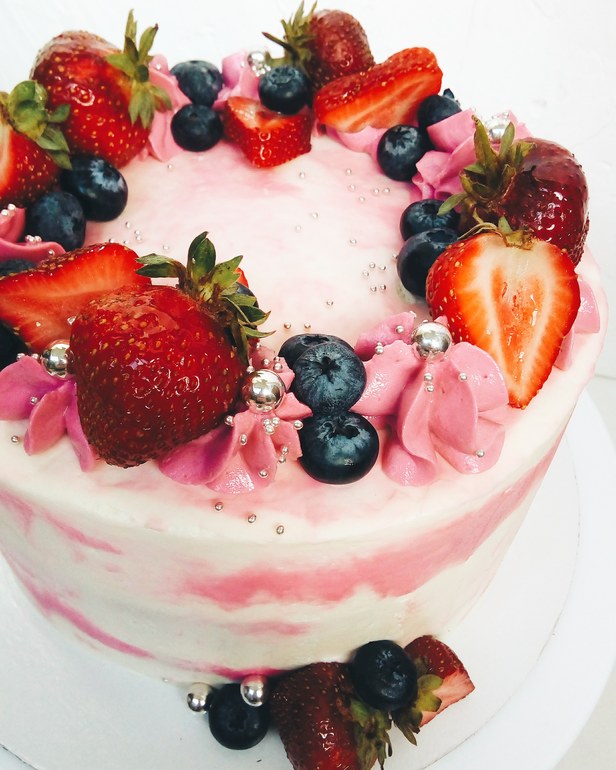 Украшение тортов кремом,шоколадом, фруктамиВанильные коржи,клубничное компоте,крем чиз на масле.