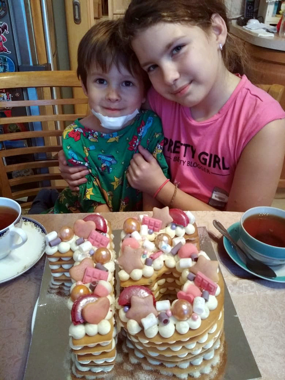 Украшение тортов кремом,шоколадом, фруктамиТортик на двойное день рождение - девочке 10 и мальчику 5