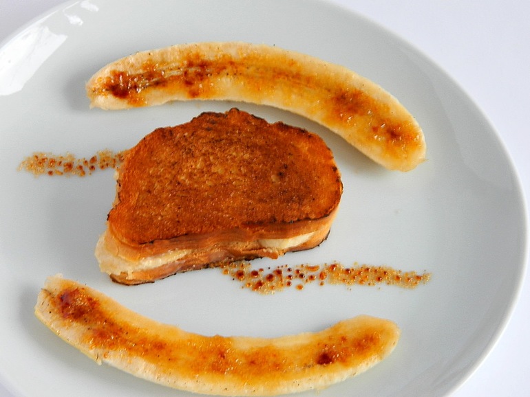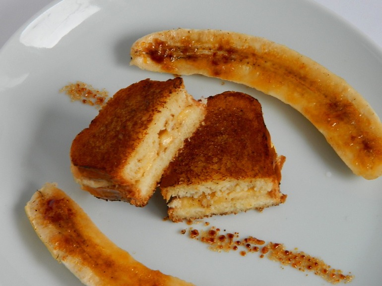 Крок-месье с бананом, имбирем, корицей, коричневым сахаром и сгущенкой. Рецепт Тарасовой Импровизация подачи и зажарки на сковороде, эээ моя, а сэндвичницы у меня нет, но реально подумываю купить. Процесс ускорится и упростится.