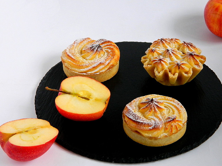 Тарталетки яблочные с шапочкой из заварного крема и заварного теста.