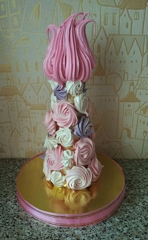 Спасибо.Пирамида картонная,обтянута пленкой.Безе приклеилась на шоколад