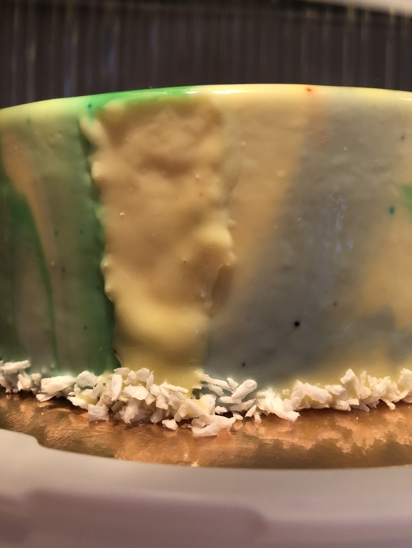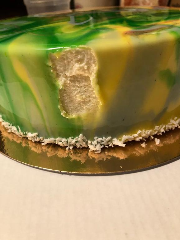 Спасибо! В конечном итоге заказчик и хотел вкрапления. Поэтому я целенаправлено недомешала краситель. Но сколько нервов мне стоил этот бочок🤦♀️ Глазурь неровно легла - торт не доконца проморозился. Заказчик попросил торт «по-раньше» 😳 И я рискнула
