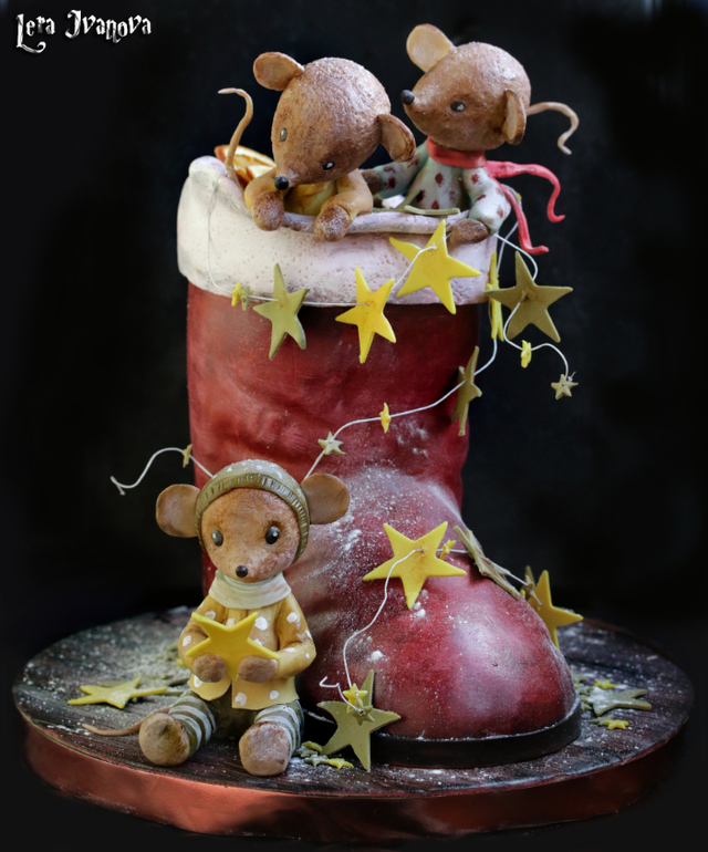 Торты 3ДВнутри шоколадный мусс, бисквит брауни шоколадный. Вес торта примерно 3 кг. Покрытие сахарно-шоколадная паста. Декор - фигурки из сахарной пасты. Полностью ручная работа. Источник идеи - иллюстрация. Внесены мои изменения