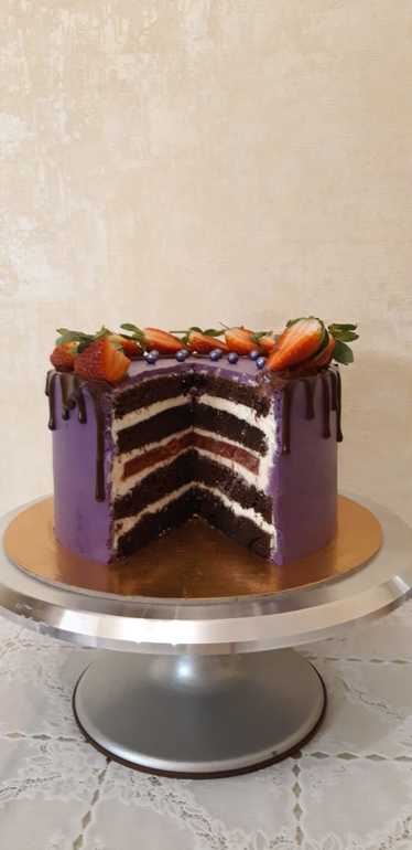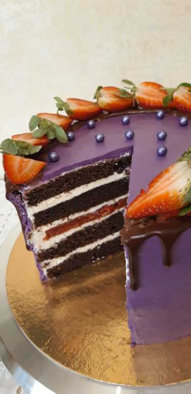 Это всего лишь мой третий торт в жизни! Чёрный лес с вишнёвым конфи, крем-чизом и клубникой