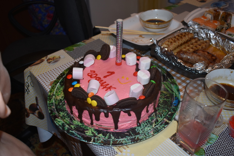 Первый раз в жизни украшала торт к празднику. Это был морковный торт с апельсиновым кудром и домашней карамелью, выравненный кремом чизом со сливками и политый глазурью.