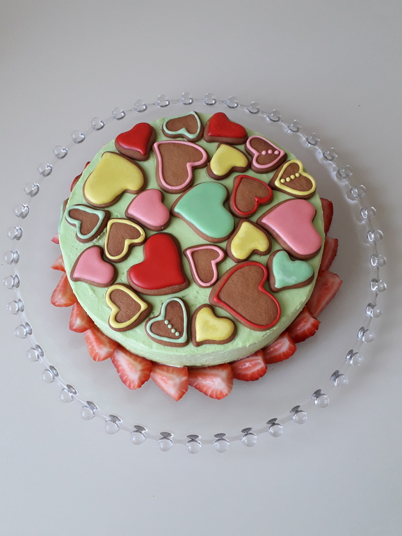 На этом бы и закончить рассказ, да вот глазурь осталась и потянула за собой тортик на 14 февраля. Мы его не отмечаем, но чем не повод угоститься вкусняшкой) салатовый, пожелание мужа