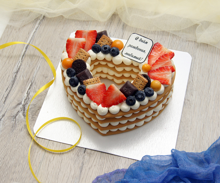 ...медовые коржи со сливочно-сырным кремом и конфи вишня