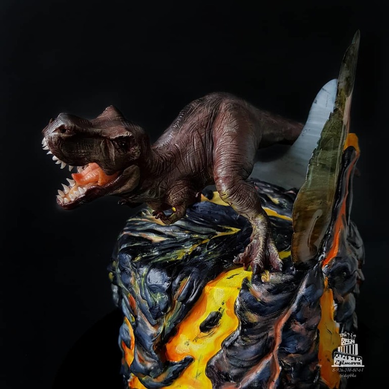 Торты тематическиеОчень просили злого тирекса)) но похоже он опять у меня добряк, который жарится на лаве)))