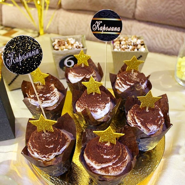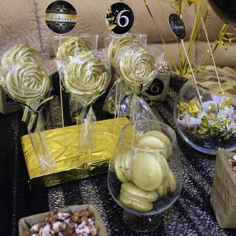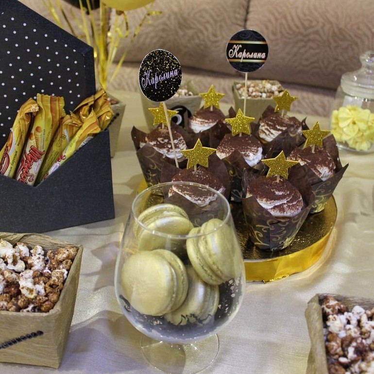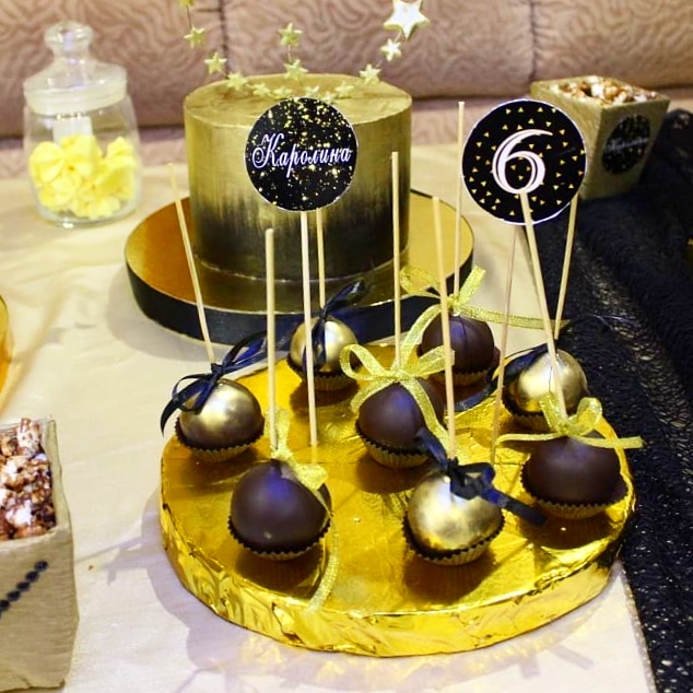 Кенди бар к золотому торту со звездами.