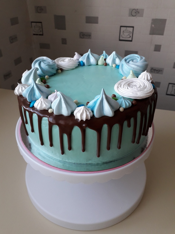 Торт, украшенный кремом и безе