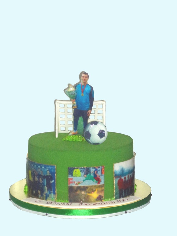 Я часто вижу торты с сахарной печатью, размещенной вместо фигурок (ну как в данном случае у тебя вратарь). Я прекрасно понимаю почему они имеют место быть - быстро и дешево... Но у меня всегда возникает вопрос - что мешает вырезать изображение по контуру, не оставляя вокруг изображения белую канву или, как в твоем случае, зелень между ног.. Чисто с визуальной точки зрения это "удешевляет" общую картинку торта. Так вот вопрос - это все идет от "дешевизны" заказа и, как следствие, работы по нему "на отколебись" или если вырезать нормально они стоять не смогут? Я честно.. просто не знаю как вы их крепите в вертикальном состоянии и есть ли разница. Все мои гипотетические раздумья по поводу гипотетической установки приходят к выводу, что разницы нет.. Тогда остается вариант только один - так легче и никто не заморачивается с вырезанием по контуру.. Это так или я что-то упускаю? Повторюсь - вопрос чисто познавательный.. спрашиваю у тебя потому, что у других спросить боюсь))