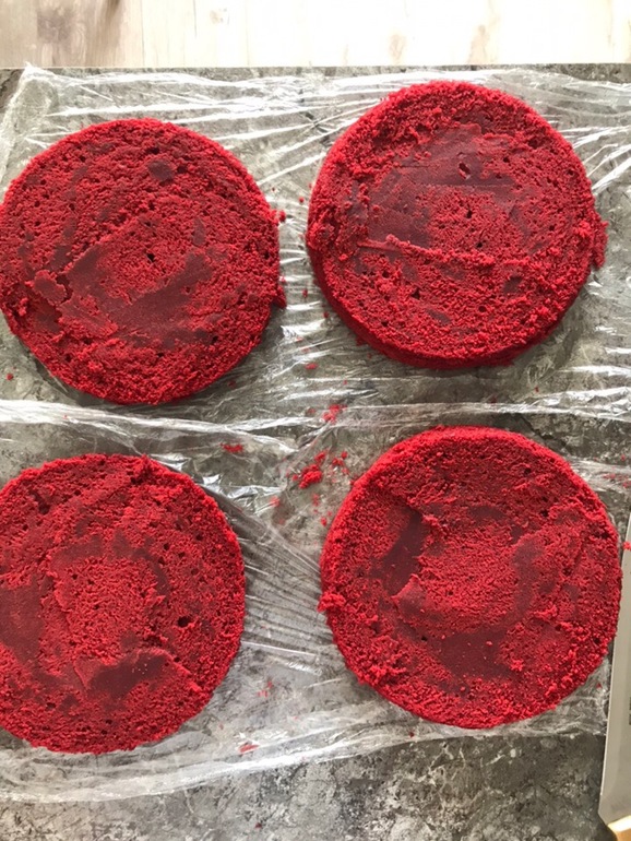 Нашла рецепт на кефире, очень вкусный. И для себя поняла, что красный надо печь по отдельности. Вот прям три коржа пеку отдельно тоненькие. Буквально 15-20минут