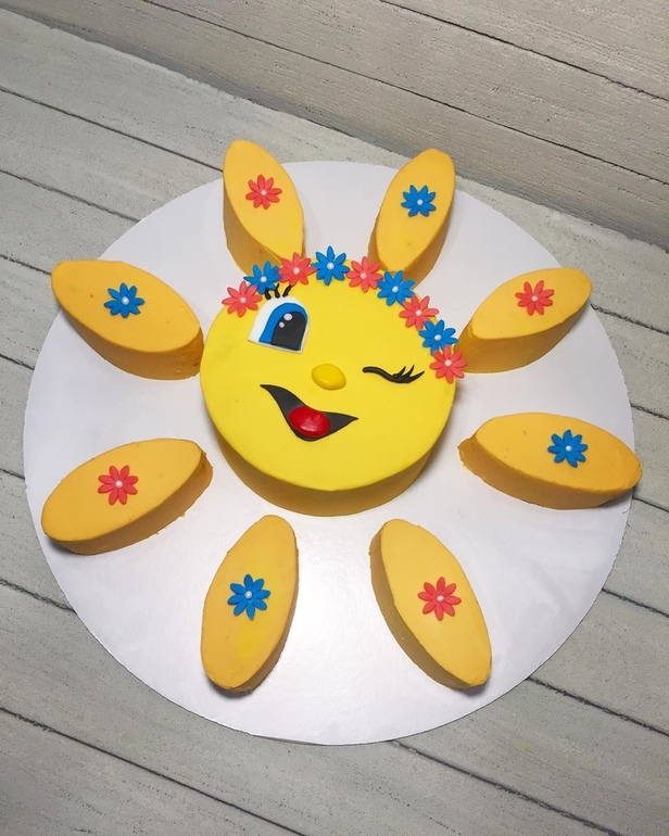Украшение тортов кремом,шоколадом, фруктамиЯ это сделала, 30 лучиков, 5 коробок при транспортировке Фото, к сожалению, только такое из садика. 2 кг торт и по 190 гр пирожные Общий вес 7700 г.