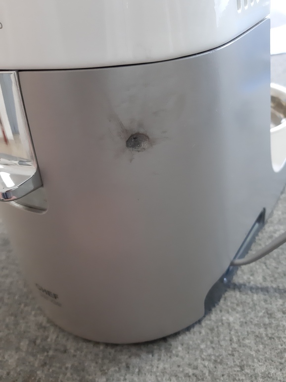 Первую принес муж, потому что он хороший и потому что знает как я страдаю без своей техники. Моему бедняге Кенвуду в ремонте учинили акт вандализма: зачем-то попытались просверлить корпус и в таком виде нам вернуть, типа так и былО!