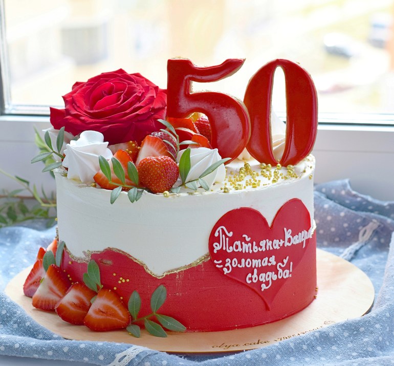 Украшение тортов кремом,шоколадом, фруктамиНа золотую свадьбу.