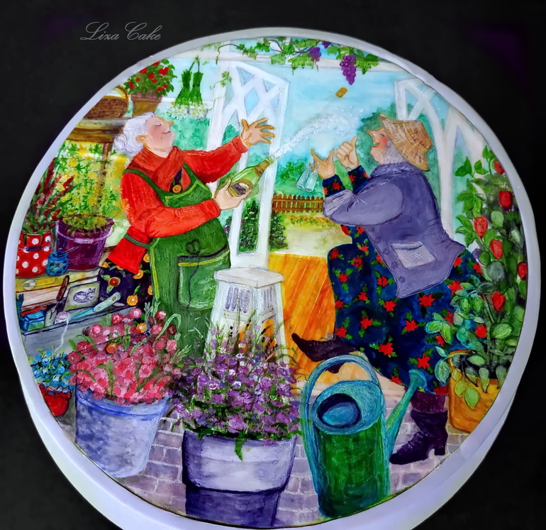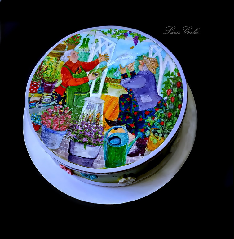 Всё было настолько серьезно, что я единственный раз в жизни даже набросок рисунка для торта сделала - сад, цветы, колодец и прочая пасторальная тематика..