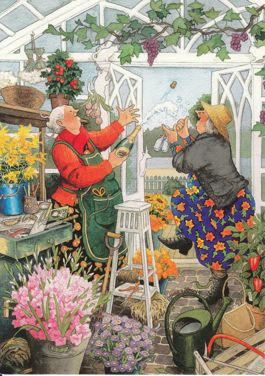 Согласовывали различные элементы мы долго.. и вдруг у меня инсайтом вспомнились работы финской художницы Инге Лоок из серии "Веселые старушки" (другой перевод - "Неунывающие старушки").