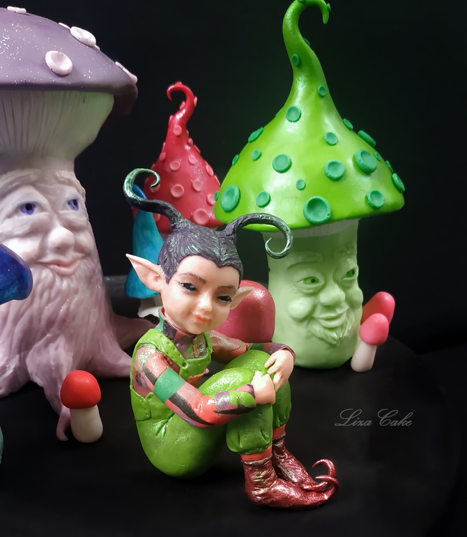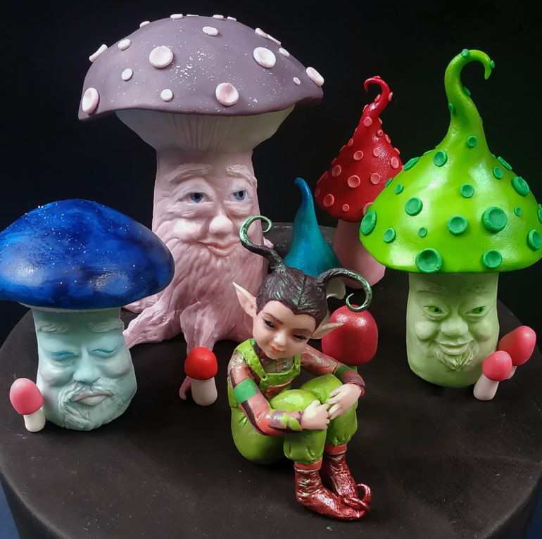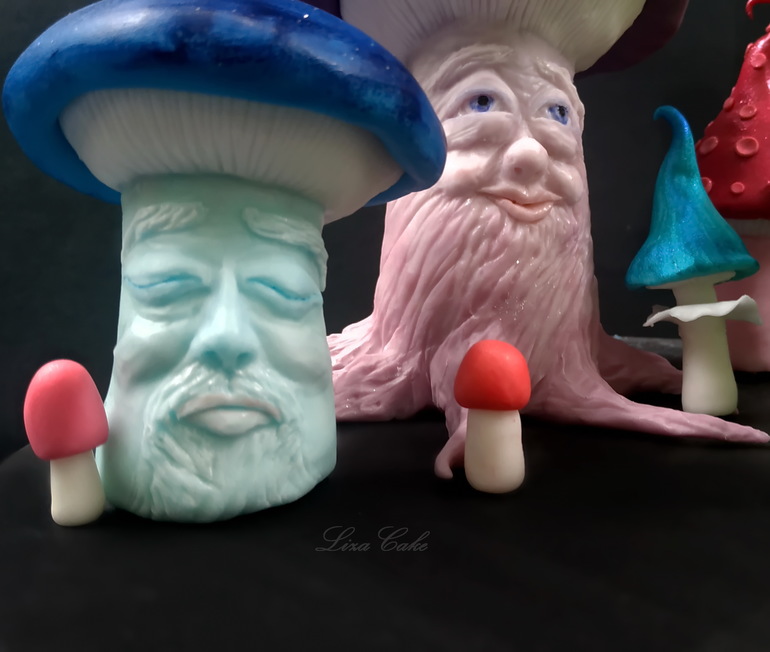 этот шел ещё легче, чем предыдущий.. видимо потому, что первый на "ура" воспринялся и страха, что не понравится, уже не было Сначала девочку делала, потом грибы, потом в голову пришло грибам лица сделать.. после первого гриба (который розовато-сиреневато-фиолетовато-какой-то) с фейсом прорвало и лица обрели синий и зеленый.. на остальных угомонилась - просто грибы)..