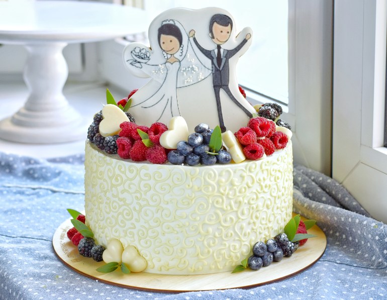 Украшение тортов кремом,шоколадом, фруктамиСвадебный торт на празднование в узком кругу 🤗.