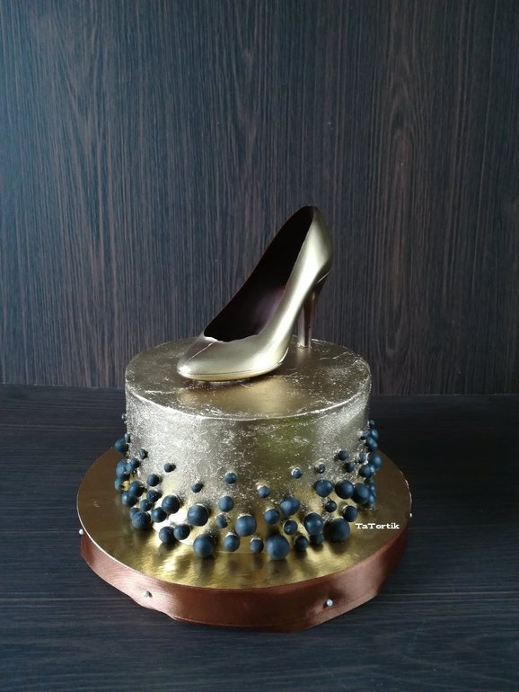 Украшение тортов кремом,шоколадом, фруктамиСрочный золотой торт за 15 часов от и до. Требование золотой торт с чёрным, хотелось бы черную ленту, но не было, пришлось коричневую. Кому нужна золотая краска пишите в лс.