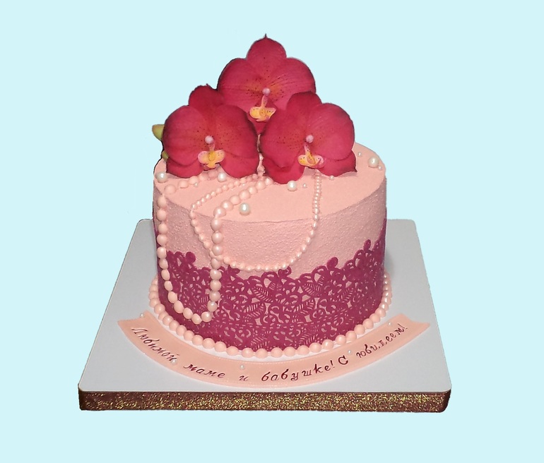 На декор -гель. Мазала жирно с другой стороны. Когда приклеяла, вспомнила, что кто-то советовал сзади кружева растопленным маслом (или какао-маслом) смазывать. В следующий раз так сделаю - смажу маслом (чтобы колом стояло) и посажу на декор-гель. Оно после смазывания немного пошло бугорками, но, т.к. я смачно намазала декор-гелем, в холодильнике все выровнялось и встало как надо.